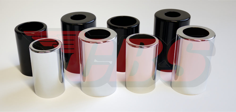 Our complete set comes with chrome & black covers to fit (1 pair) of shocks - yes, 1 pair for one motorcycle! Very high quality set imported from England ready to be fitted