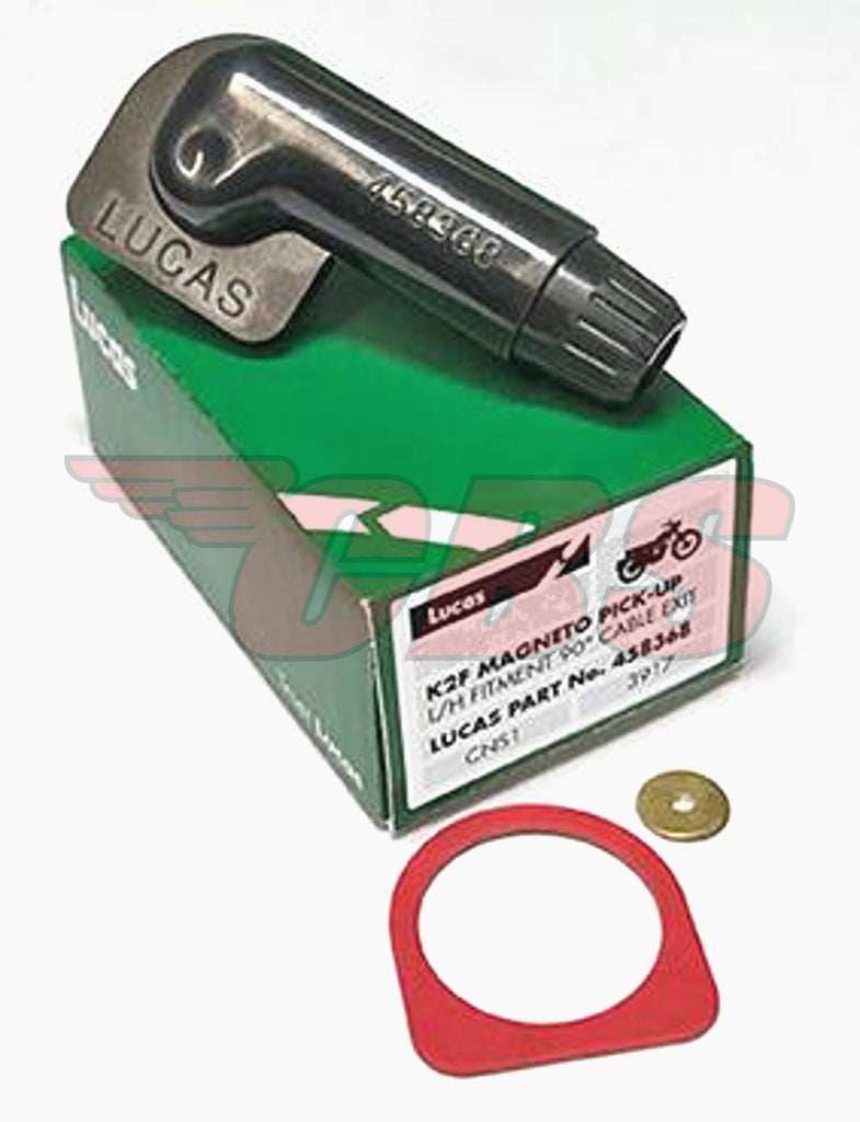 New K2F Lucas Magneto 90° Pickups. This are very high quality Lucas replacement parts that are ready to be installed. Comes included with pickup brush, washer, spring, acorn screw, gasket and body.