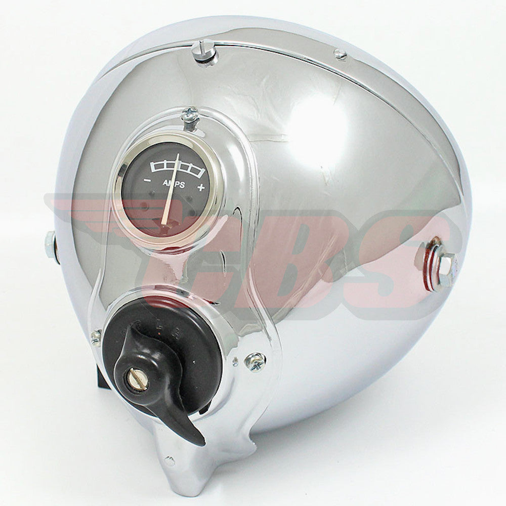 For sale today are new Lucas Type Complete 7" SSU700 6 Volt Headlight Assembly. Comes complete with a 6V Bulb, Pilot Holder W/ Bulb, Ammeter, Light Glass, and the "Short Knob" Switch. Great for Early Triumph, BSA, Norton, AJS & Matchless motorcycles from approx 1949-1957