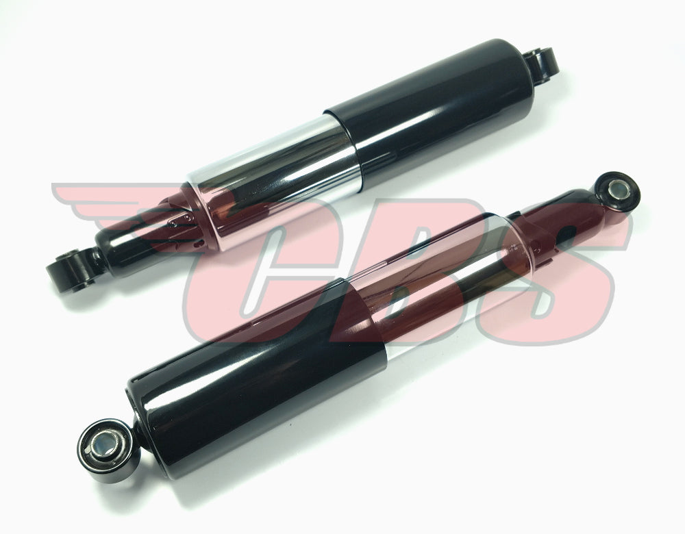 Fits Triumph 650 Twins (Bonneville, T120, T120RV, Trophy, TR6C, Tiger & TR6) from 1969-1972. Also fits Triumph 500 Twins (Daytona, T100R, Trophy, T100C & Tiger) from 1969-1974. May fit other British motorcycles that require a 12.9" (eye to eye) shocks with 3/8" top and bottom bushings.